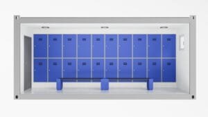 Zgjidhje funksionale për ruajtjen e sigurt të pajisjeve personale, veshjeve dhe mjeteve të punës në kantierë ndërtimi, fabrika, palestra, evente dhe hapësira të tjera industriale. Këto kontejnerë janë projektuar për të ofruar komoditet dhe organizim të përsosur për punonjësit dhe përdoruesit.
